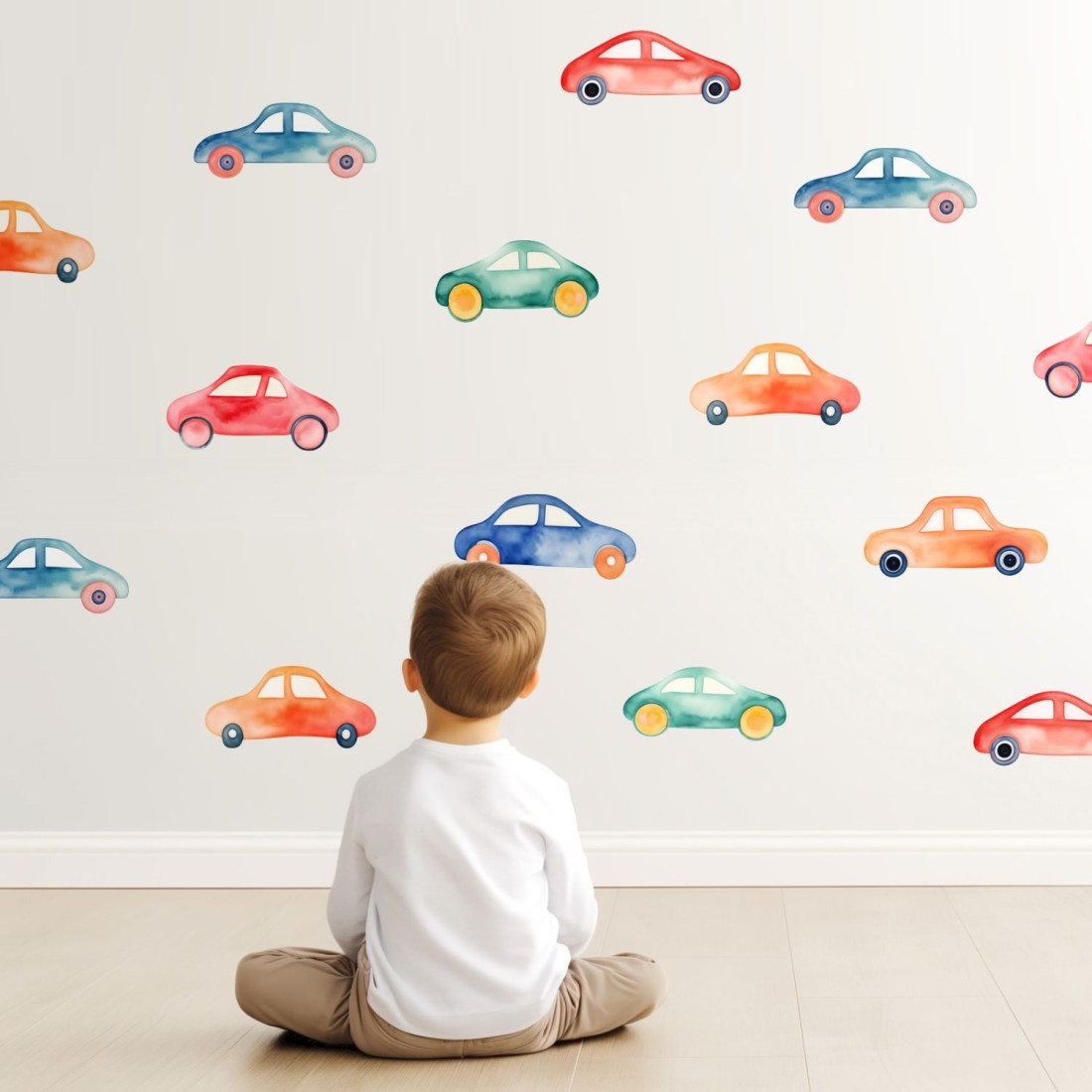 Σετ Αυτοκόλλητα παιδικά με χαριτωμένα watercolor πολύχρωμα αυτοκινητάκια.