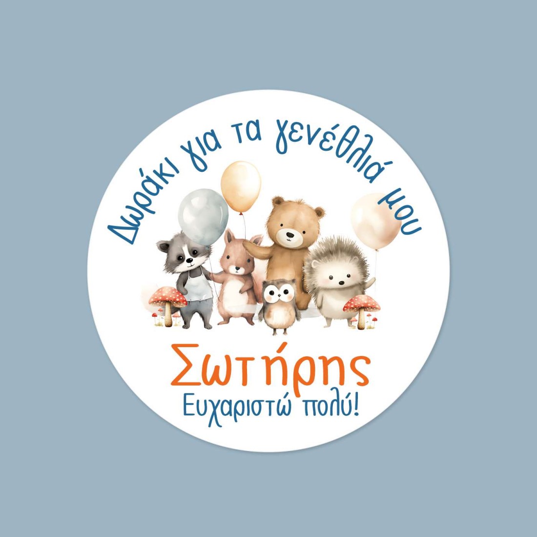 Αυτοκόλλητες ετικέτες γενεθλίων με ζωάκια & όνομα 51042