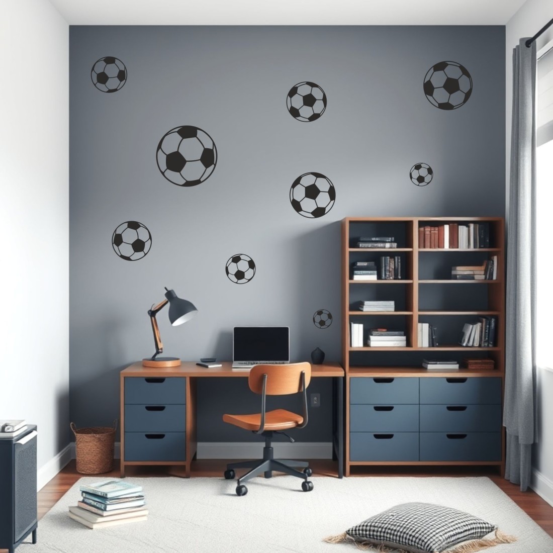 Αυτοκόλλητο τοίχου μπάλες ποδοσφαίρου (9 τεμ) 128016
