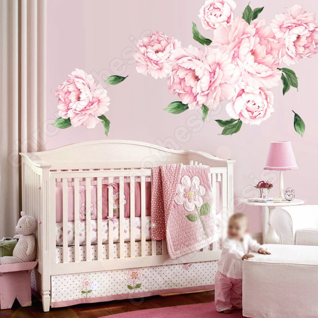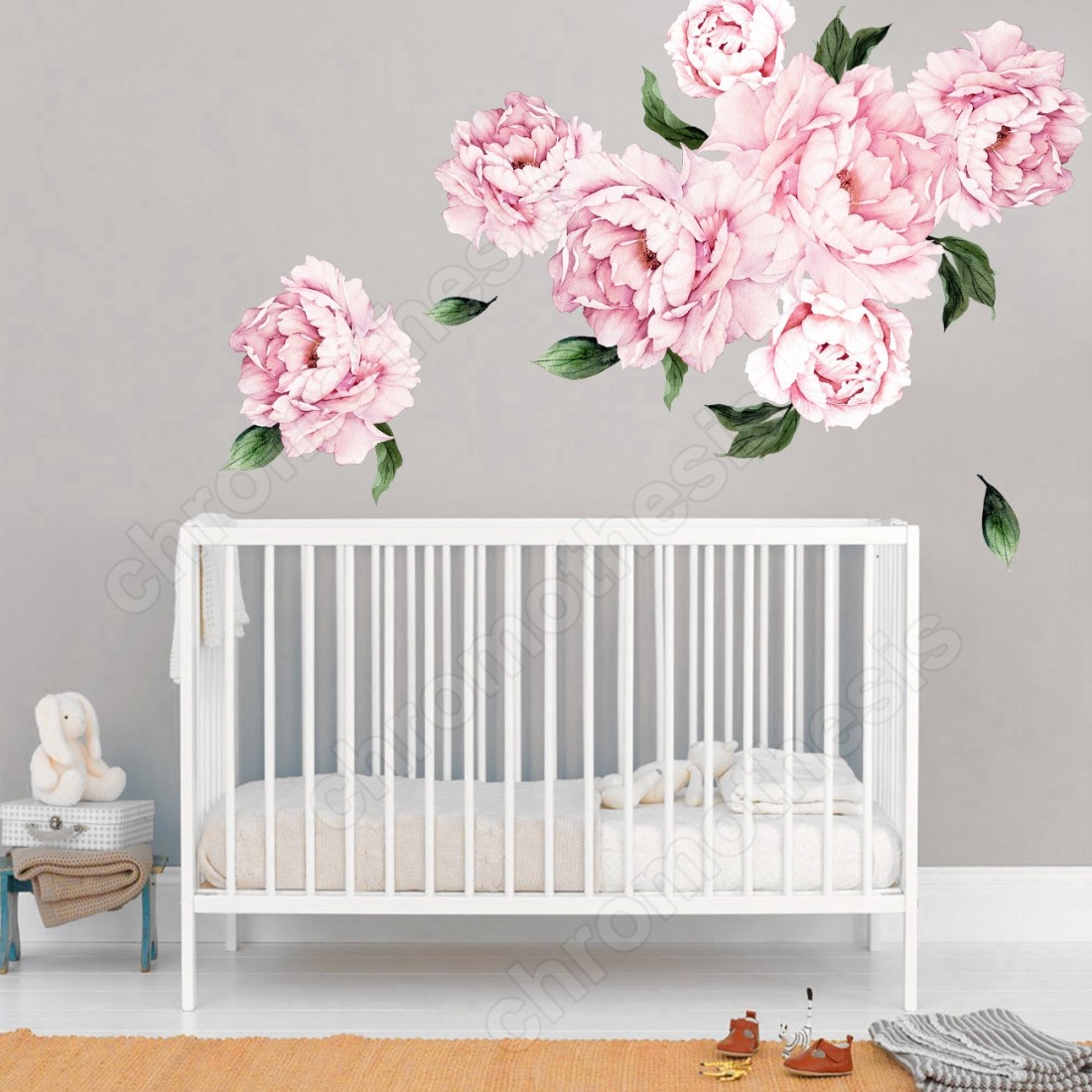 Αυτοκόλλητο τοίχου φλοραλ με πανέμορφες παιώνιες σε διάφορες αποχρώσεις.