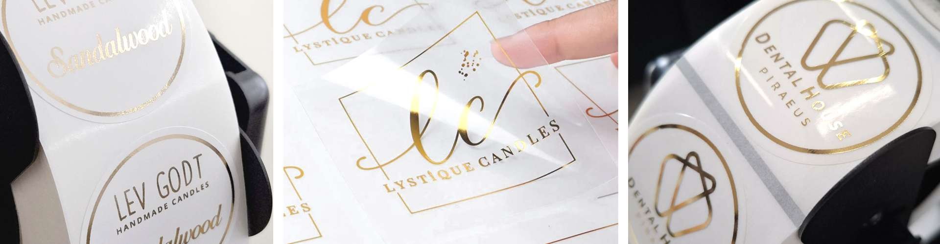 Διάφανες αυτοκόλλητες ετικέτες με εκτύπωση σε χρυσό (ορθογώνιες) 42004